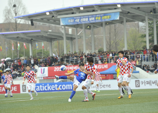 지난 13일 대전 한남대학교 대운동장에서 열린 '2012 카페베네 U리그' 개막전 한남대와 단국대의 3라운드 경기에서 주전 공격수들의 날카로운 공격을 앞세운 한남대가 3-1 승리를 거두며 리그 첫 승을 기록했다.