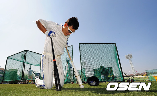 14일 오후 대구구장에서 열린 '2012 팔도 프로야구' 삼성 라이온즈와 넥센 히어로즈의 경기에 앞서 삼성 이승엽이 훈련을 하고 있다.
