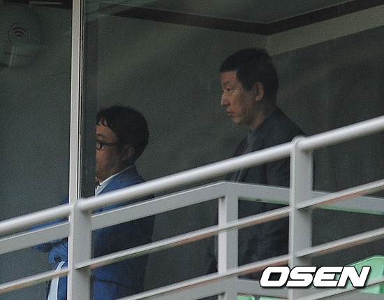 14일 오후 전주월드컵경기장에서 열린 '현대오일뱅크 K리그 2012' 전북 현대와 부산 아이파크의 경기 국가대표 최강희 감독이 전북과 부산의 경기를 관전하고 있다.