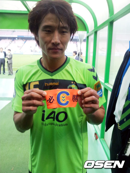 부상서 회복한 전북 주장 조성환(30)은 이날 경기 전 뜻밖의 선물을 받았다. 팬들이 직접 준비한 주장 완장. 그것에는 한자로 '필승(必勝)'이 적혀 있었다. 주장으로서 팀 승리를 위해 더욱 열심히 뛰라는 팬들의 의지가 담겨 있는 것.