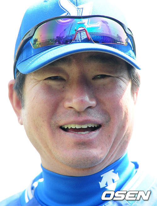 15일 오후 대구구장에서 열린 '2012 팔도 프로야구' 삼성 라이온즈와 넥센 히어로즈의 경기에 앞서 삼성 류중일 감독이 취재진과 이야기를 나누며 환하게 웃고 있다.
