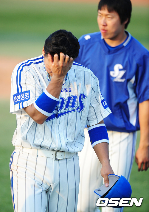 시즌 1호 홈런을 날렸지만 팀 패배로 빛이 바랜 삼성 이승엽이 아쉬운 표정을 지으며 더그아웃으로 향하고 있다../jpnews@osen.co.kr