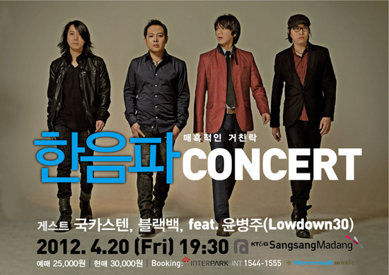 한음파는 이날 공연에 자신들과 음악적 색깔이 비슷한 국카스텐을 비롯해 어린 나이답지 않은 단단한 음악적 내공을 보이는 블랙백을 게스트로 초대해 팬들의 더욱 큰 환호를 받을 전망이다.