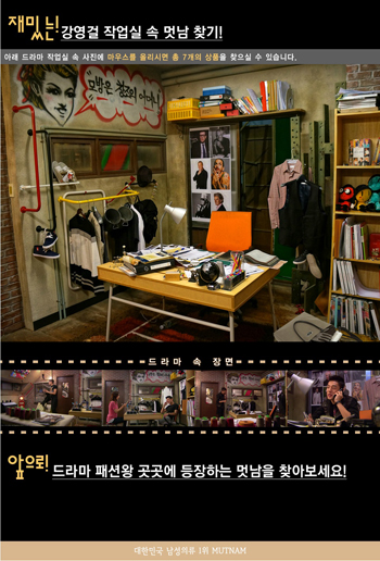 그런데 최근 강영걸의 극중 작업실에 걸린 의상 및 패션 소품들 중 일부가 온라인 쇼핑몰 멋남 제품이라는 사실이 알려지며 누리꾼들 사이에서 이슈다.
