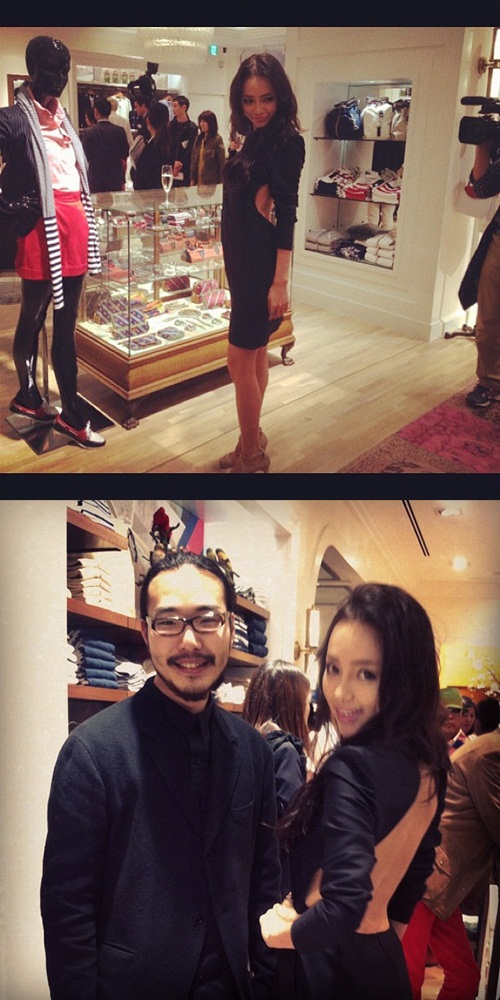 아유미는 지난 16일 오후 자신의 트위터에 "마음에 드는 원피스 입고, 신난다(웃음)(お気に入りワンピース着て、ノリノリ。笑)"에 이어 "타테하나 씨와(with mr.TATEHANAっち)"라는 글과 함께 두 장의 사진을 게재했다.