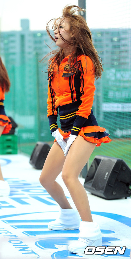 17일 오후 서울 목동야구장에서 열린 '2012 팔도 프로야구' 넥센 히어로즈와 KIA 타이거즈의 경기 넥센 치어리더가 응원을 하고 있다.
