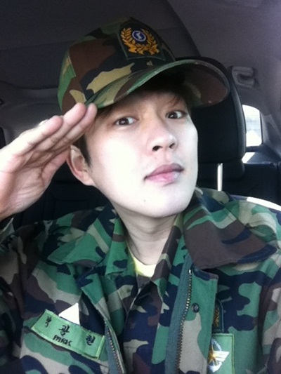 공개된 사진 속 박광현은 군복을 입고 '충성'하는 포즈를 취하고 있다. 박광현은 남자다운 모습과 함께 미소년 같은 뽀얀 피부로 매력을 과시했다.