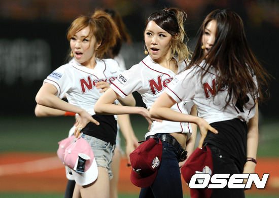 18일 오후 서울 목동야구장에서 열린 '2012 팔도 프로야구' 넥센 히어로즈와 KIA 타이거즈의 경기, 클리닝타임 걸그룹 브레이브걸스가 축하 공연을 하고 있다.