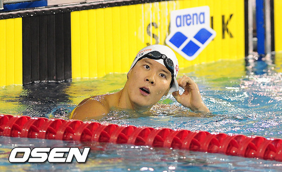 19일 오후 울산 문수실내수영장에서 열린 동아수영대회 남자 자유형 400M경기에서 박태환이 전광판 기록을 보고 있다