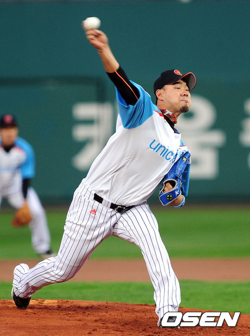 19일 부산 사직구장에서 열린 '2012 팔도 프로야구' 롯데 자이언츠와 SK 와이번스의 경기 1회초 롯데 선발 송승준이 역투하고 있다.