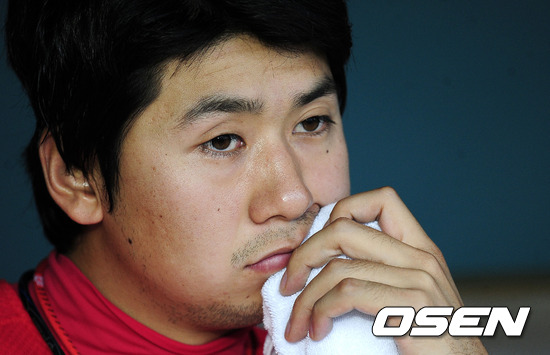 1회초 SK 선발투수 윤희상이 더그아웃에서 경기를 지켜보고 있다.