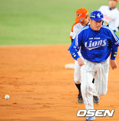 진갑용은 2루와 3루 사이에서 런다운에 걸렸다. 공을 잡은 이여상은 진갑용을 2루로 몰아간 뒤 공을 이대수에게 넘겼다. 공을 넘겨받은 이대수가 진갑용을 쫓을 때 쉽게 볼 수 없는 장면이 나왔다. 이대수의 글러브에서 공이 빠진 것이다. 공이 데구르르 구르는 사이 협살에서 벗어난 진갑용은 슬라이딩으로 3루 베이스에 안착했고, 타자 손주인도 1루를 지나 2루까지 내달렸다.