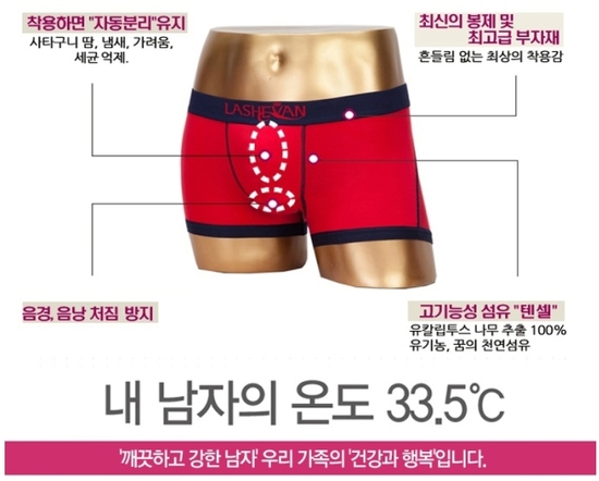 남성 사타구니에 땀이 차지 않고 허벅지, 음낭, 음경을 입체적으로 분리해주는 기능성 속옷이 나왔다.