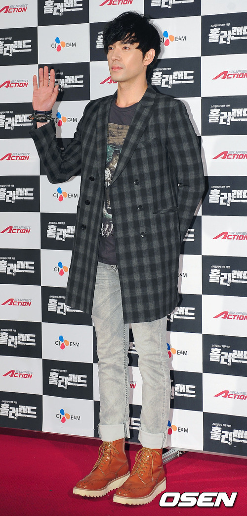 23일 오전 서울 상암동 CGV에서 열린 수퍼액션 '홀리랜드' 제작발표회에서 성웅이 포토타임을 갖고 있다.
