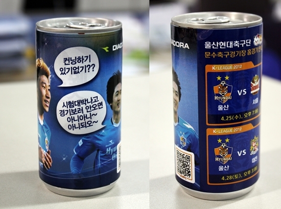 캔커피에는 센스 넘치는 스티커를 붙였다. 이근호와 곽태휘를 모델로 '시험 대박나고 경기 보러 안오면 아니아니~아니되오~'라는 개그 프로의 유행어를 담아 시선을 끌었다. 울산이 준비한 선물은 이틀 간 약 1천여명의 학생들에게 지급됐다. 학생들은 선물을 받기 위해 줄을 서서 기다리는 등 높은 관심을 드러냈다. 반응도 매우 좋았다는 것이 울산 관계자의 전언.