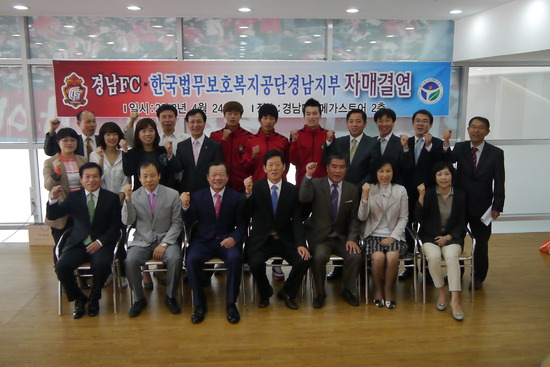 경남FC는 24일 오전 경남FC 사무국에서 경남FC 서장욱 단장, 김인한 윤일록 강승조와 한국법무보호복지공단 윤용민 경남지부장, 법무부 범죄예방 위원 의창지구 이연호회장과 갱생보호분과이래호위원장 등 관계자 20여명이 참석한 가운데 협약식을 갖고 갱생보호대상자들의 스포츠참여를 통한 사회 복귀를 돕고 지역사회의 범죄예방활동에 서로 협조하기로 했다.