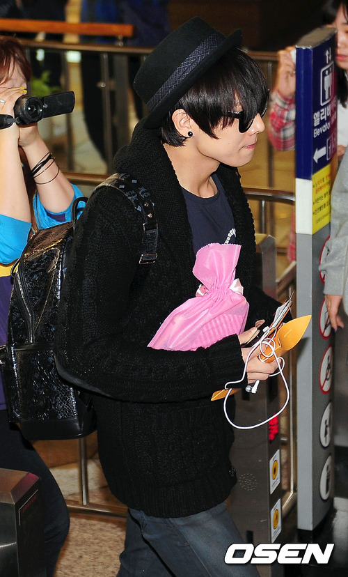 24일 오후 김포공항에서 엠넷 '엠카운트 다운' 4월 일본 투어를 위해 엠블랙 이준이 출국을 위해 공항으로 들어서고 있다.