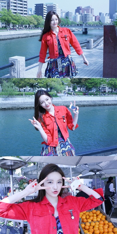 공개된 사진 속 강민경은 빨간 재킷에 짧은 원피스를 입고 카메라를 응시하고 있다. 긴 생머리를 늘어뜨리고 귀여운 '브이(V)' 포즈를 취하고 있어 눈길을 끌었다. 특히 9등신의 몸매 비율과 인형 같은 외모로 여신 미모를 뽐냈다.