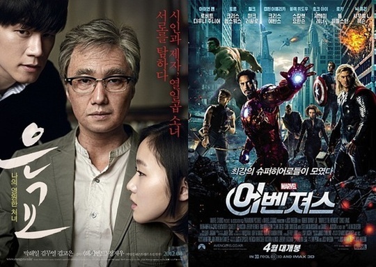 영진위(영화진흥위원회) 통합전산망의 집계에 따르면 지난 25일 개봉한 '어벤져스'는 전국 7만 2936명의 관객을 모으며 박스오피스 1위에 올랐다. 누적관객수는 7만 4371명. 이로써 '배틀쉽'에 이어 '어벤져스'로 1위 바통이 외화에서 외화로 넘거가게 됐다.