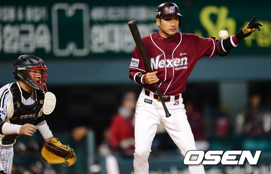 26일 잠실구장에서 열린 '2012 팔도 프로야구' LG 트윈스와 넥센 히어로스의 경기 4회초 무사 1루 이택근 LG 주키치 와일드 피칭때 1루 주자에게 주루 사인을 보내고 있다.