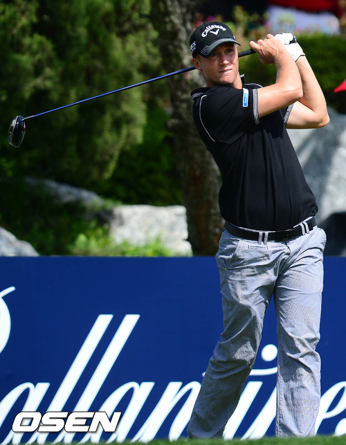 유럽프로골프(EPGA) 투어 제5회 발렌타인 챔피언십 2라운드 경기가 27일 오전 경기도 이천시 블랙스톤 골프 클럽에서 열려 알렉산더 노렌이 10번홀에서 티샷을 날리고 있다.