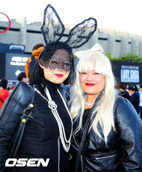27일 오후 서울 잠실종합운동장에서 '현대카드 슈퍼콘서트 16 - 레이디 가가 내한공연 (Lady Gaga The Born This Way Ball)'가 열릴 예정인 가운데 독특한 의상을 입은 팬들이 이른 시간부터 모여 공연을 기다리고 있다.