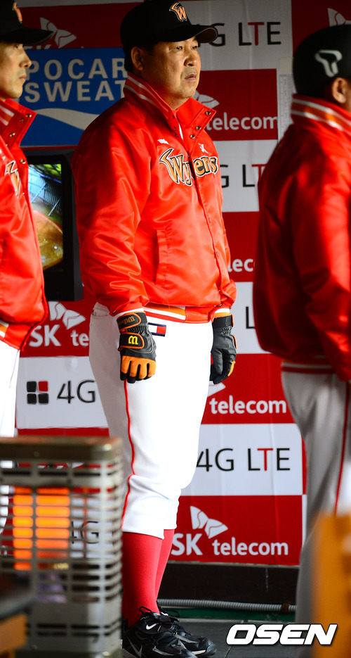 27일 오후 인천 문학구장에서 열린 2012 팔도 프로야구 SK 와이번스와 삼성 라이온즈의 경기 SK 이만수 감독이 연패탈출을 위한 농군패션을 보이고 있다.