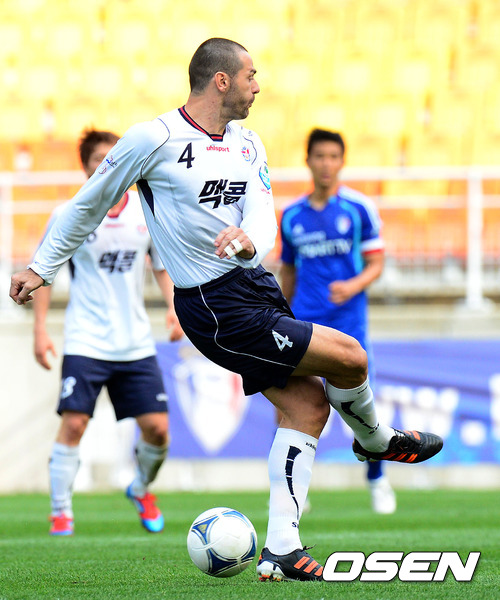 28일 오후 수원월드컵경기장에서 열린 현대오일뱅크 K리그 2012 10라운드 수원 삼성과 성남 일화의 경기, 후반 성남 사샤가 헛발질을 하고 있다.