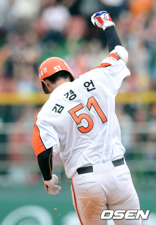 재역전 투런포 김경언,'주먹 불끈'