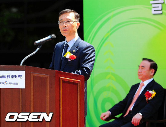 30일 오전 서울 올림픽공원 테니스장에서 열린 '클린 스포츠 통합콜센터 개장행사'에서 김용환 문화체육관광부 제2 차관이 기념사를 하고있다.