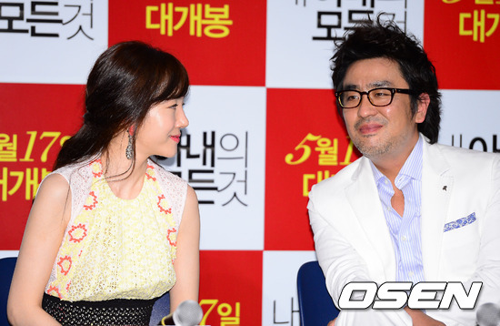 2일 오후 서울 왕십리 CGV에서 열린 '내 아내의 모든 것'(민규동 감독) 시사회에서 임수정 류승룡을 바라보고 있다.