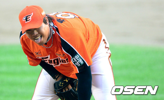 1회말 1사 2루에서 한화 류현진이 LG 이진영에 볼넷을 허용하고 아쉬워하고 있다.