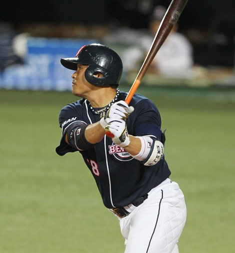 1회 헛스윙 삼진으로 아쉬움을 남긴 김동주는 3회에도 중견수 뜬공에 그치며 2타석을 무안타로 보냈다. 그러나 5회 볼카운트 1-0에서 윤성환의 공을 그대로 밀어쳐 우익수 앞으로 보내는 모습을 보여줬다. 7회 김동주는 권혁의 초구를 공략해 중전 안타로 연결하며 멀티히트에 성공했다.