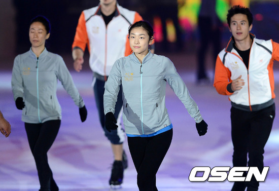 3일 오후 서울 송파구 올림픽 체조경기장에서 진행된 'E1 올댓스케이트 스프링 2012' 연습 공개 및 기자회견 현장에서 김연아가 리허설을 갖고 있다.