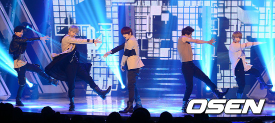 3일 오후 서울 마포구 상암동 CJ E&M 에서 진행된 Mnet 엠카운트다운(이하 엠카) 에서 초신성이 'Stupid Love'를 열창하며 멋진 무대를 선보이고 있다.