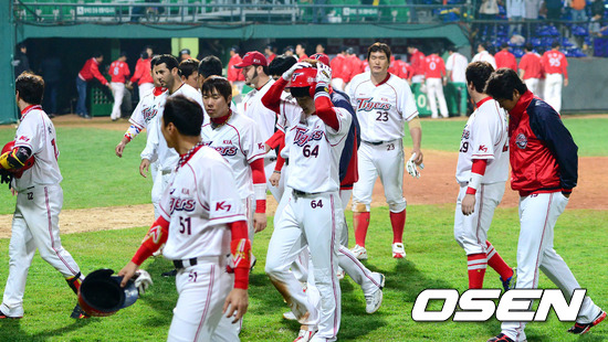 3일 오후 광주구장에서 열린 '2012 팔도 프로야구' KIA 타이거즈와 SK 와이번스의 경기 종료후 선수들이 그라운드를 빠져나가고 있다.