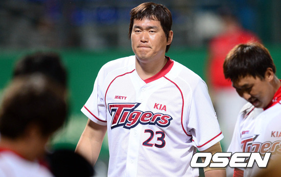 3일 오후 광주구장에서 열린 '2012 팔도 프로야구' KIA 타이거즈와 SK 와이번스의 경기 종료후 최희섭이 그라운드를 빠져나가고 있다.