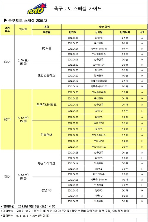 한편 이번 축구토토 스페셜 20회차 게임은 5일 오후 2시 50분까지 게임에 참여할 수 있으며 경기가 모두 종료된 후에 결과가 공식 발표된다.