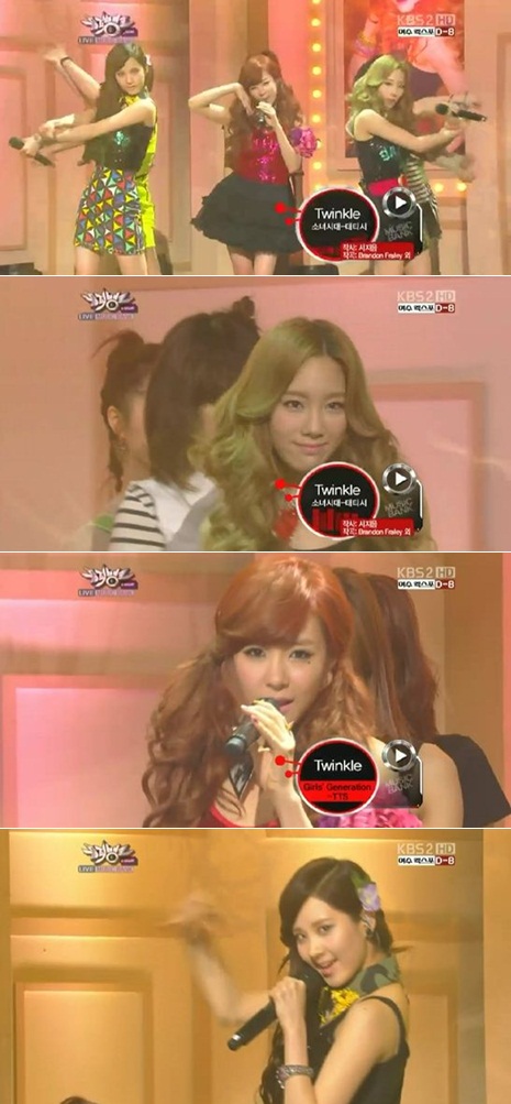 걸그룹 소녀시대의 유닛 태티서(태연-티파니-서현)가 '트윙클' 무대로 남심을 사로잡았다.