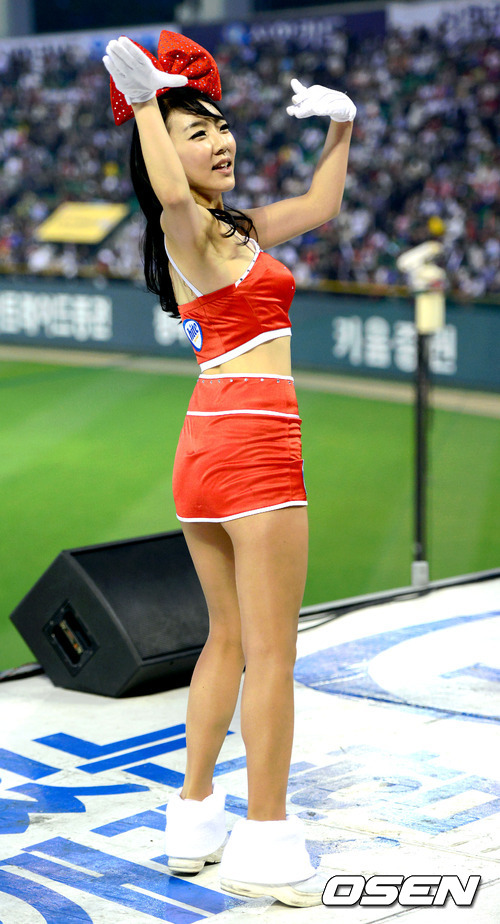 4일 오후 서울 잠실구장에서 열린 '2012 팔도 프로야구' LG 트윈스와 두산 베어스의 경기에 LG 치어리더들이 멋진 공연을 펼치고 있다.