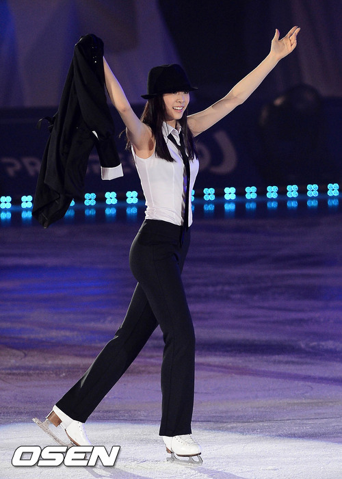 4일 오후 서울 송파구 올림픽 체조경기장에서 진행된 'E1 올댓스케이트 스프링 2012' 공연에서 김연아가 화려한 공연을 펼치고 있다.