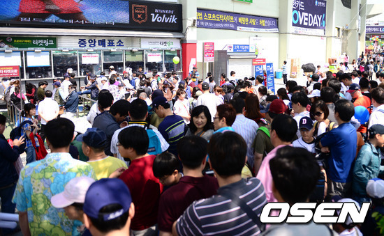 5일 오후 서울 잠실구장에서 '2012 팔도 프로야구' LG 트윈스와 두산 베어스의 경기가 열릴 예정인 가운데 팬들이 경기장을 찾아 입장을 기다리고 있다.