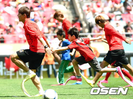 5일 어린이날 FC 서울과 포항 스틸러스가 서울월드컵경기장에서 K리그 11라운드 경기를 가졌다. 경기 전 어린이날 행사에서 FC 서울 선수들이 어린이들과 즐거운 시간을 보내고 있다.