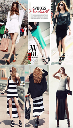 평소 섹슈얼한 연출을 즐기는 이라면 사선으로 옆 라인이 한쪽을 길고 다른 한쪽은 짧은 스커트가 효과적이다. 이런 디자인은 걸을 때마다 한쪽 다리만 드러나는 것이 포인트. 온전히 다리가 드러나는 미니스커트보다 보일 듯 말 듯 드라마틱하게 다리 라인이 보여 짐으로써 훨씬 매혹적이다.