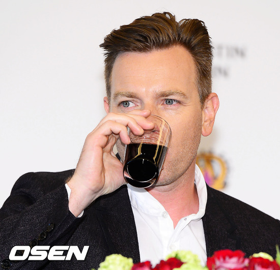 7일 오전 서울 중구 소공동 웨스틴 조선호텔 오키드 룸에서 열린 ‘신세계 러브스 브리타니아’ 캠페인 ‘이완 맥그리거 기자 간담회’에서 이완 맥그리거가 콜라를 마시고 있다.
