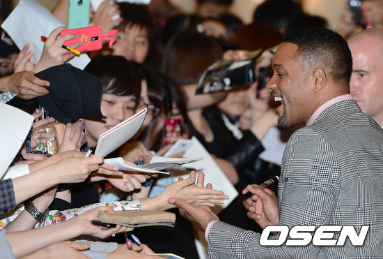 7일 오후 서울 CGV 영등포에서 열린 영화 '맨 인 블랙 3'(수입/배급: 소니 픽쳐스 릴리징 브에나 비스타 영화㈜, 감독: 베리 소넨필드) 레드카펫 & 프리미어 행사에서 할리우드 배우 윌 스미스가 팬들에게 사인을 해주고 있다.