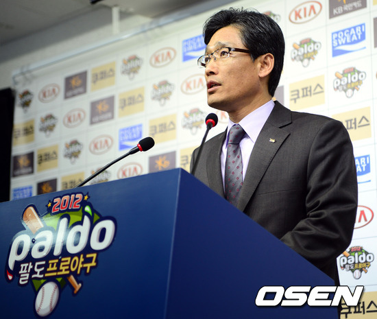 8일 오전 서울 도곡동 한국야구위원회(KBO) 야구회관에서 양해영 KBO 사무총장이 NC 다이노스의 2013시즌 1군 리그 참여 및 10구단 참여에 관한 이사회 결과를 브리핑 하고 있다.