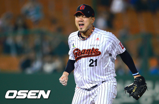 8일 오후 부산 사직구장에서 열리는 2012 팔도 프로야구 롯데 자이언츠와 삼성 라이온즈의 경기 7회초 2사 1,2루 삼성 정형식을 삼진아웃으로 잡은 롯데 송승준 선발투수가 주먹을 쥐며 환호하고 있다