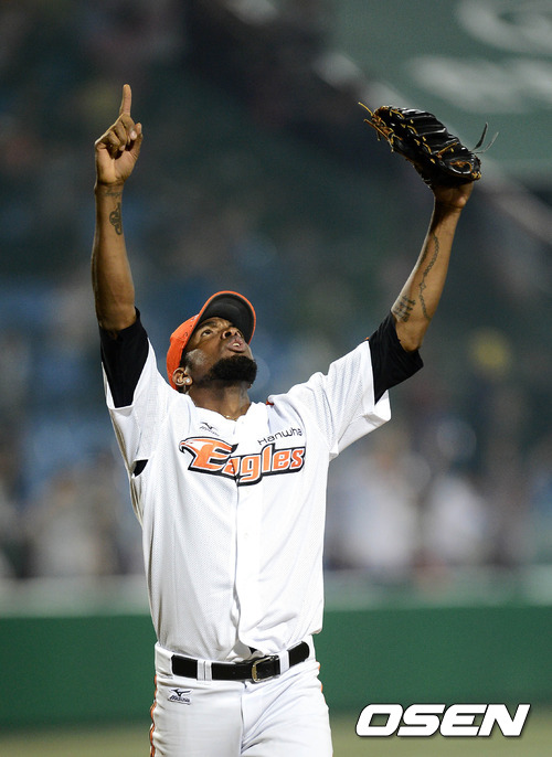 9회초 2사 2,3루 한화 바티스타가 KIA 윤완주를 삼진으로 처리하며 환호하고 있다. / sunday@osen.co.kr