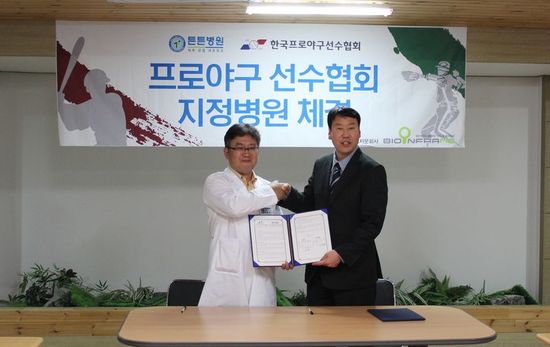 대전튼튼병원 김용석 병원장은 지난 7일 대전튼튼병원 원내 3층에서 한국프로야구선수협의회 박충식 사무총장과 협약식을 체결(사진)하고 상호협력 방안을 논의했다.